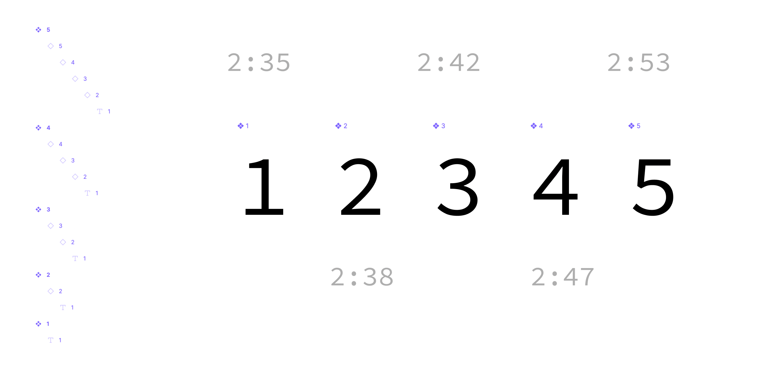 We have component 1 to 5, each instanciating a previous component. (except 1)